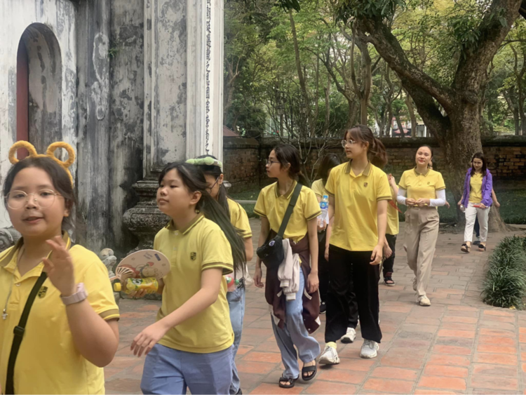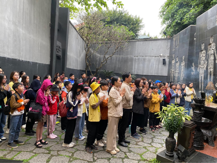 13h30, đoàn du lịch có mặt tại Văn Miếu Quốc Tử Giám - di tích lịch sử ghi lại dấu ấn của các bậc Nho học thời xưa. Qua đó, cổ vũ tinh thần học tập và không ngừng phấn đấu đi lên của các bé học sinh.