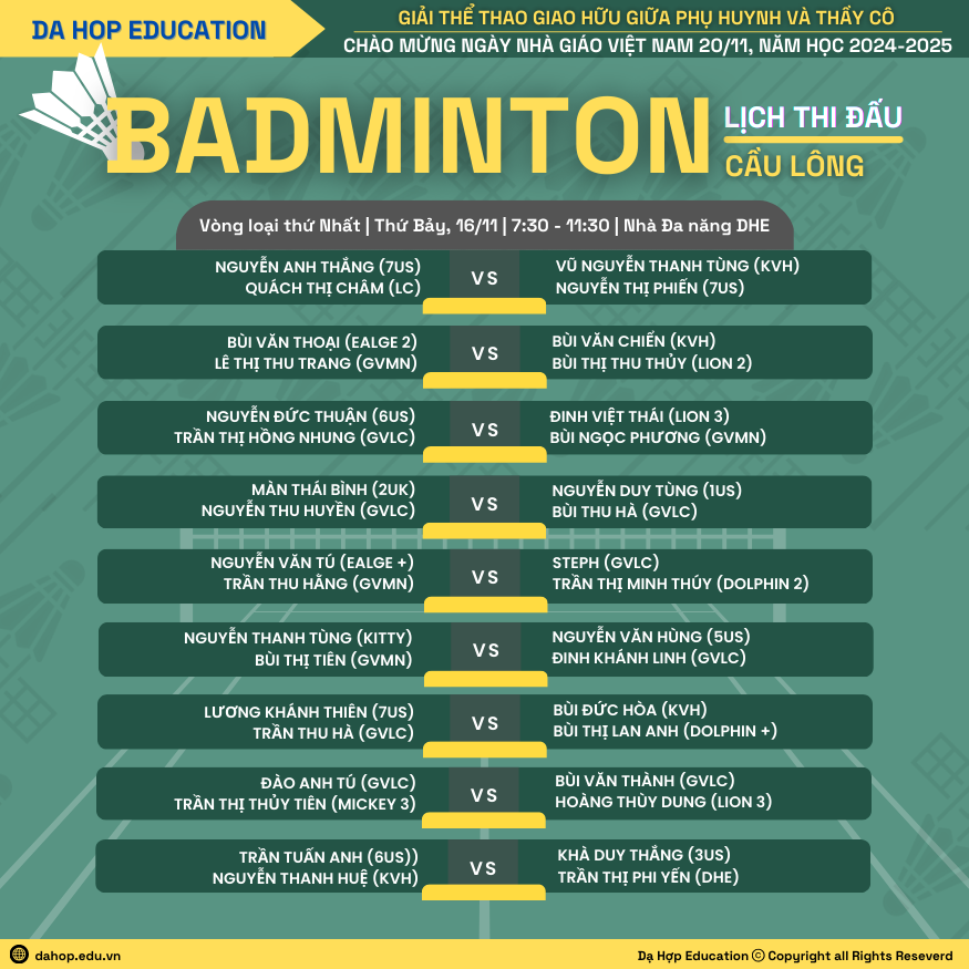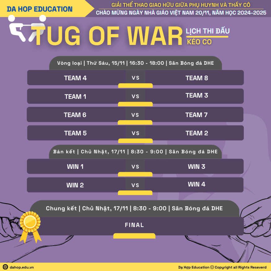 Hệ thống Giáo dục Dạ Hợp kính mời Quý phụ huynh học sinh cùng Thầy cô tham dự Giải thể thao giao hữu Phụ huynh học sinh và thầy cô giáo năm học 2024 – 2025.